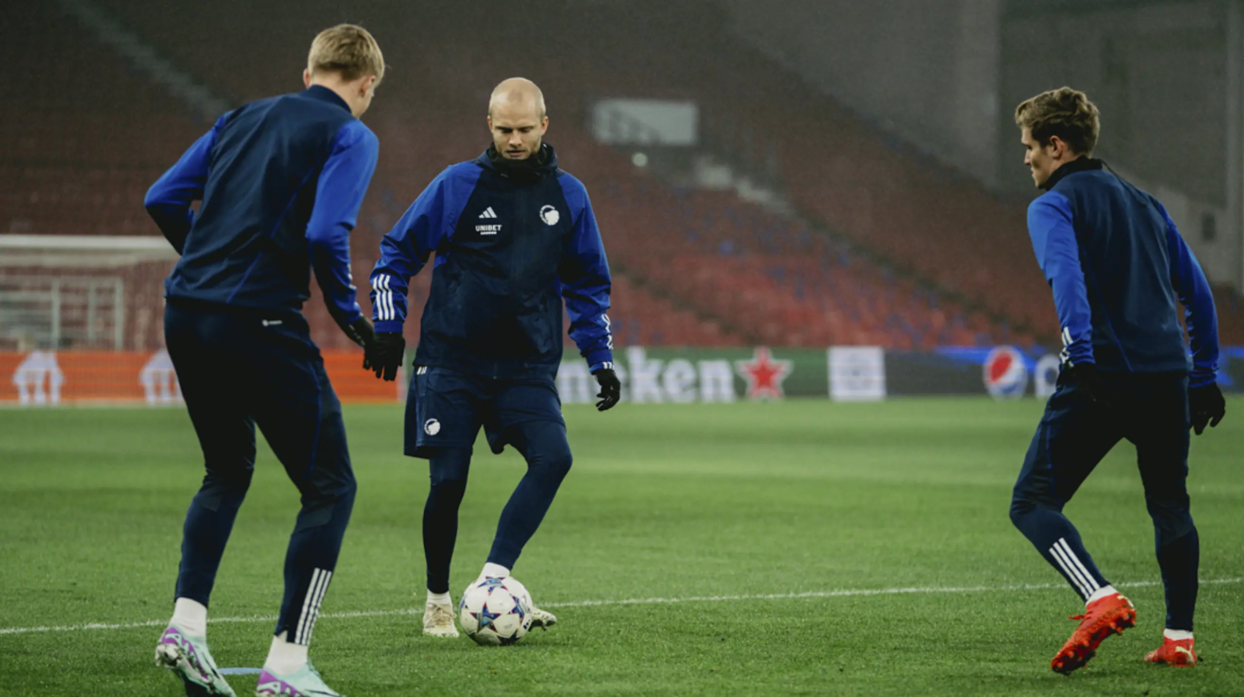 Mandag eftermiddag trænede truppen i Parken forud for tirsdagens Champions League-brag, og det var samtidig årets sidste træning før vinterpausen.