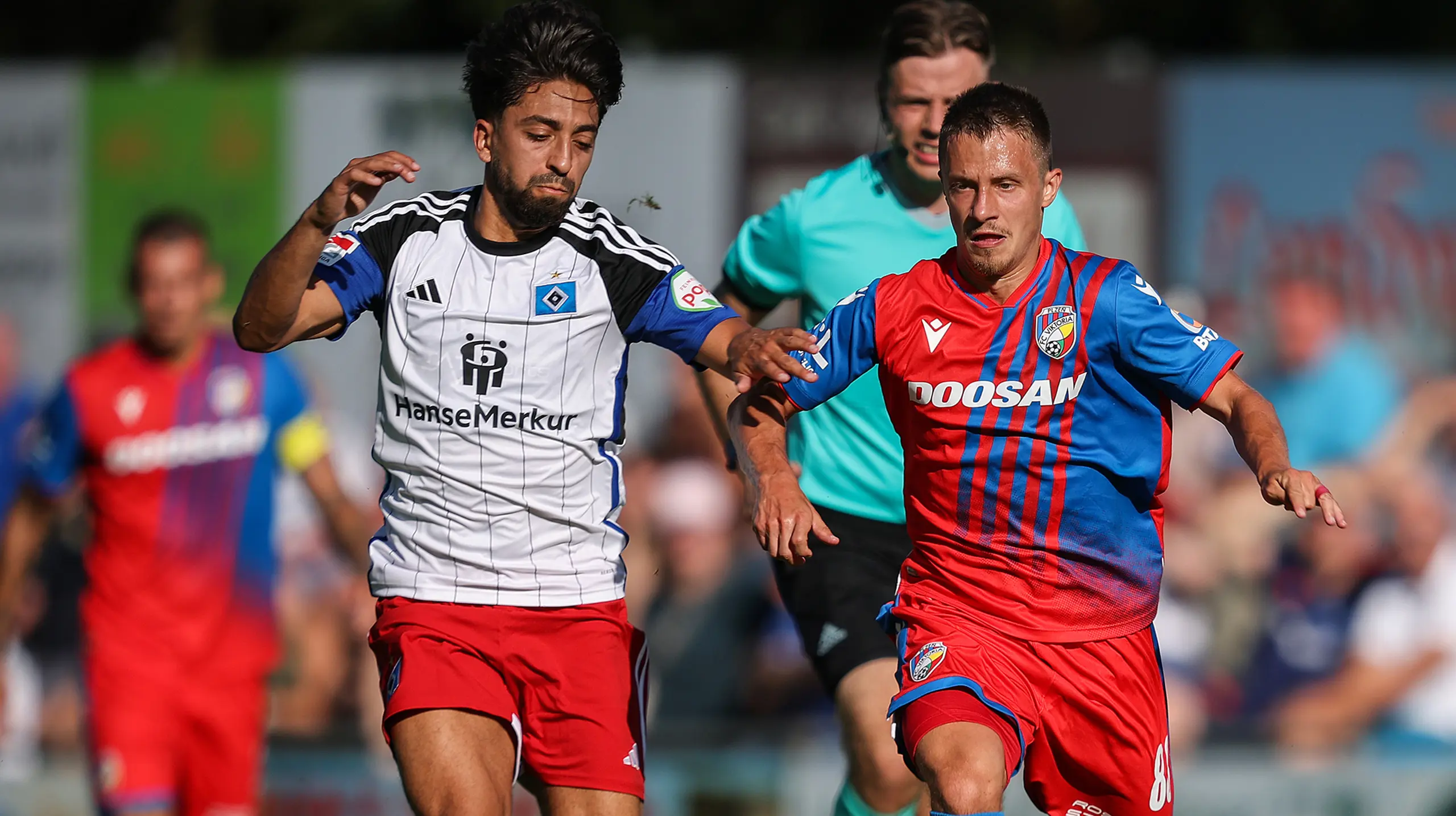 Viktoria Plzens brasilianske back, Cadu, i deres testkamp mod HSV. Foto: Getty Images