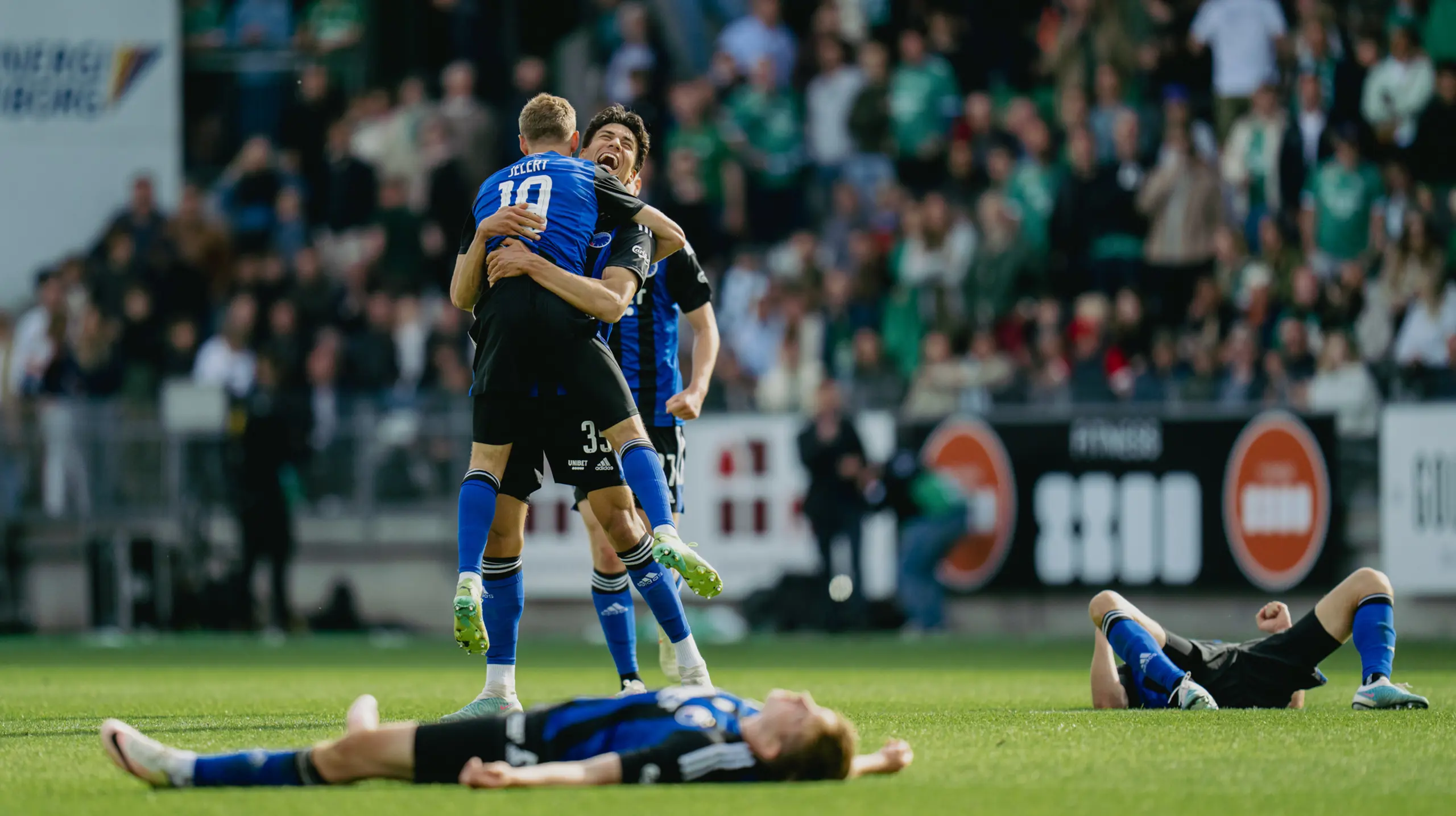 Omsider fløjtede Morten Krogh for sidste gang, og jublen brød ud i FCK-lejren. Og lettelsen, for det var fjerde kamp i træk, hvor det holdt hårdt at kæmpe den nødvendige sejr hjem: 3-1 i Brøndby, 1-0 i pokalfinalen mod AaB og senest den vanvittige 4-3-sejr mod AGF.