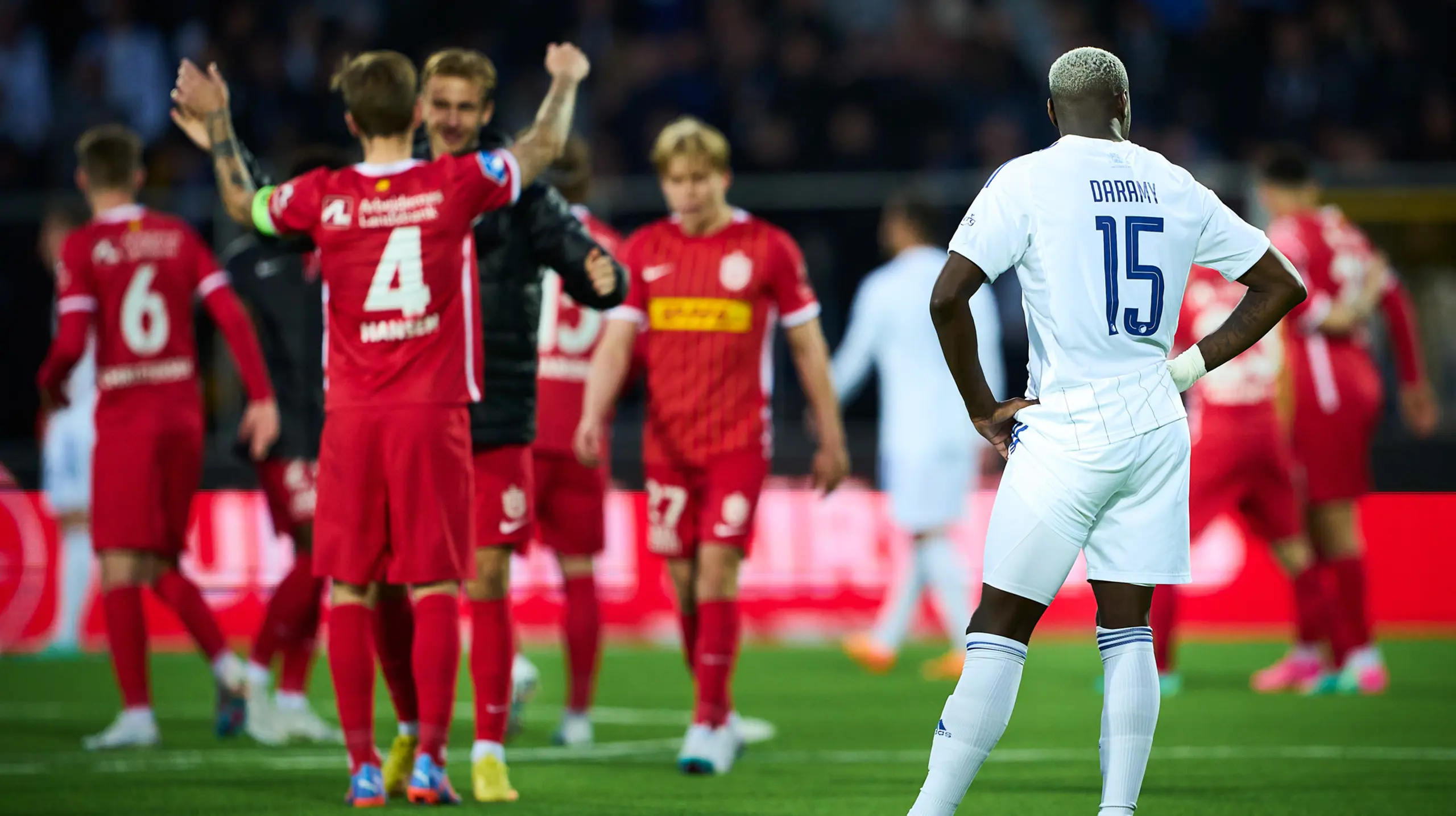 Da havde vi allerede udskiftet Vavro og Haraldsson med Stamenic og Johannesson, og kort efter udvisningen fik vi muligheden for at reducere, da Svensson langede armen bagud i feltet og ramte Lerager på halsen. Straffe – som Diogo eksekverede i 98. minut, men tættere kom vi ikke, selv om Grabara gik med frem på et langt Sørensen indkast i 100. minut.
