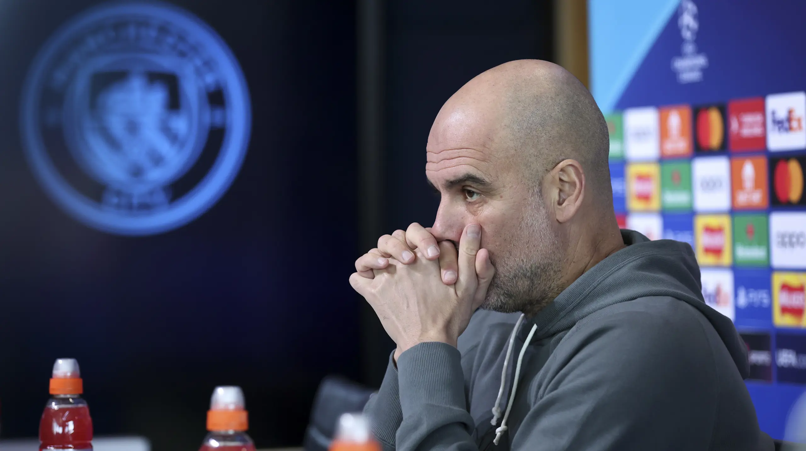 Pep Guardiola og Erling Haaland deltog i Manchester Citys pressekonference tirsdag eftermiddag forud for onsdagens 1/8-finale i Champions League.