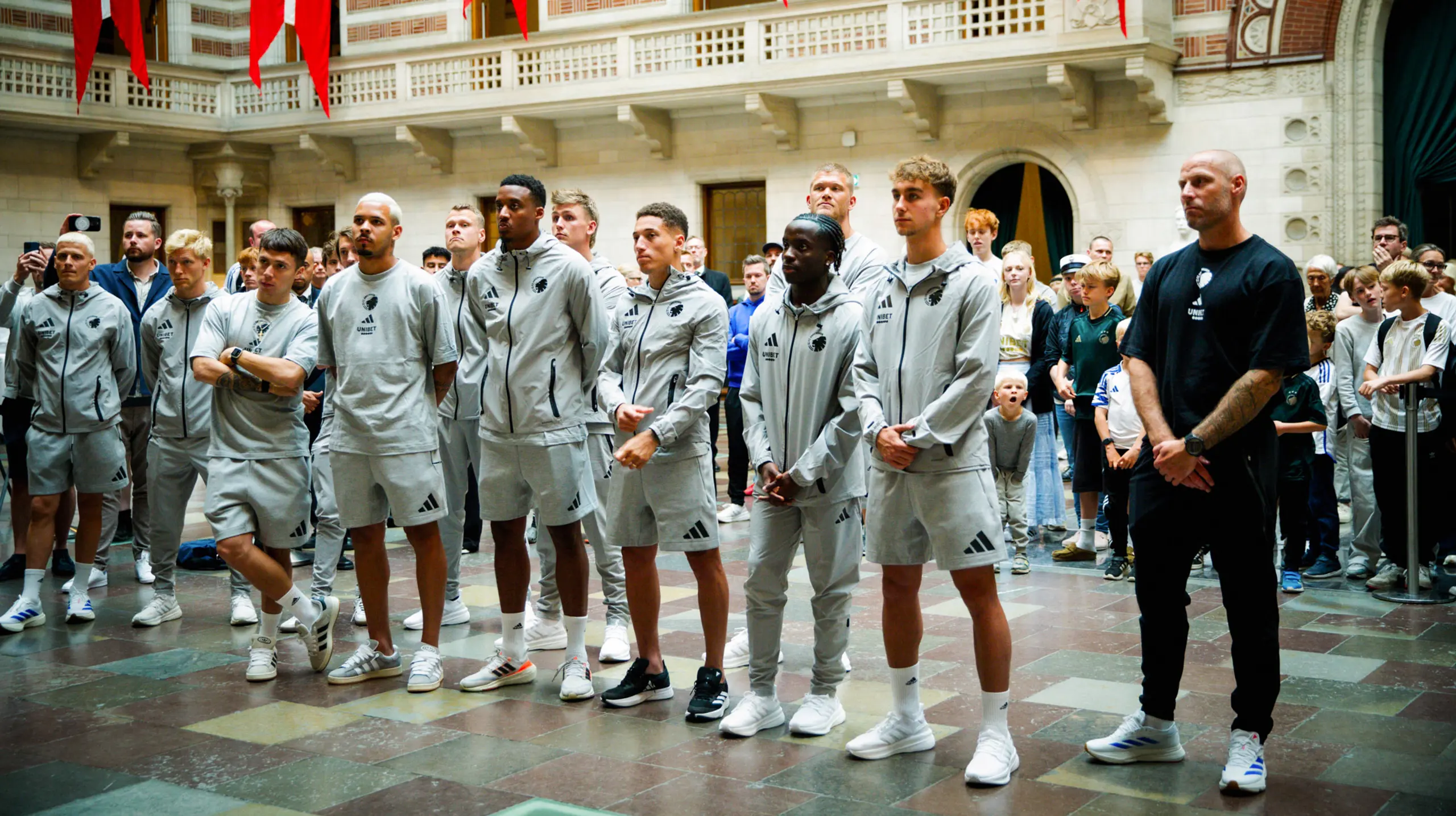 Tirsdag eftermiddag var truppen til den traditionelle hyldest på byens to rådhuse, hvor fans kunne være med og få autografer og selfies. Her kan du se nogle billeder fra arrangementet på Københavns Rådhus, hvor overborgmester Lars Weiss tog imod de danske mestre og pokalvindere.