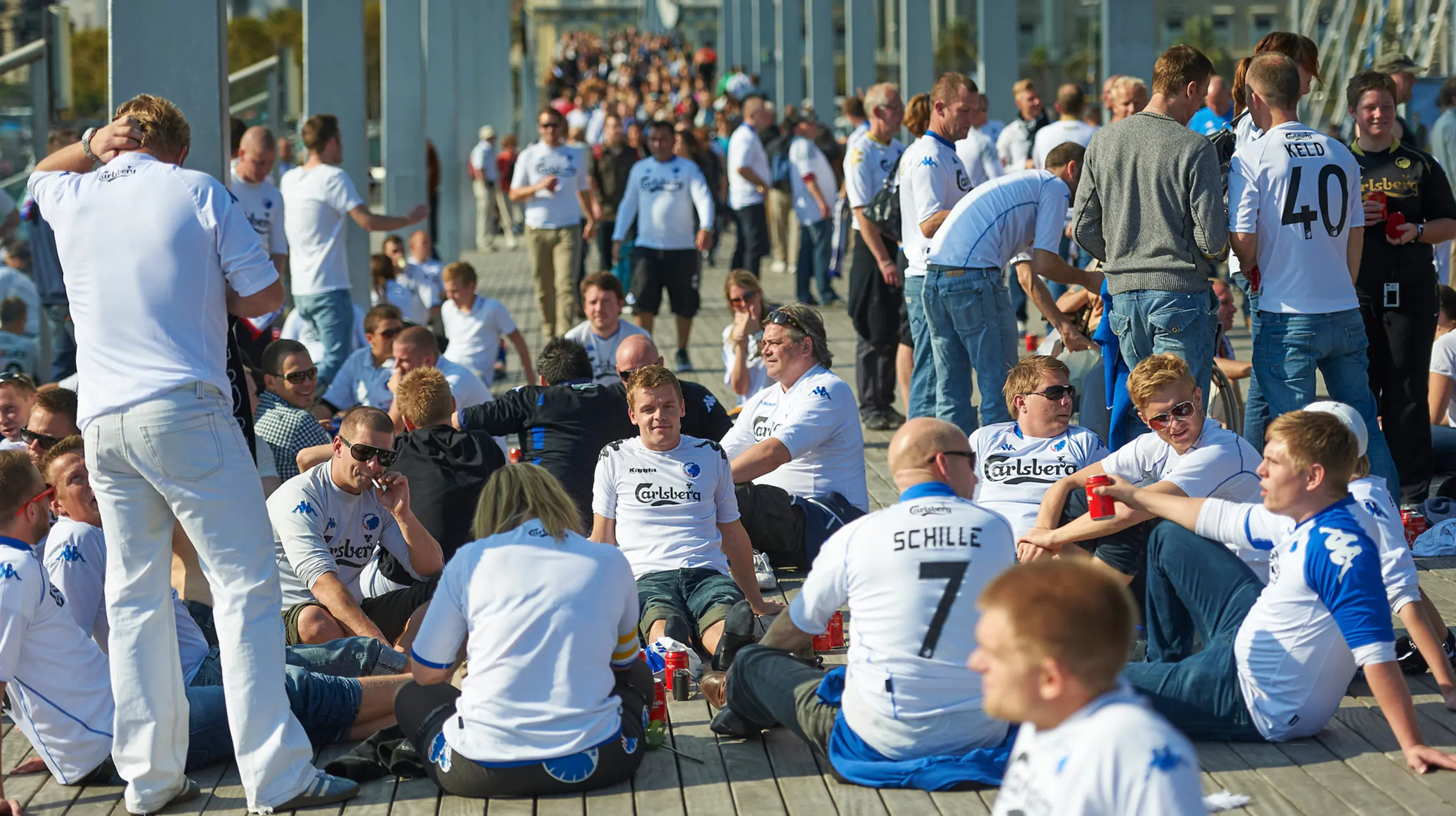 Fotograf Lars Rønbøg var også i byen og skød disse billeder af glade københavnere, der varmede op til kampen rundt om i Barcelona.